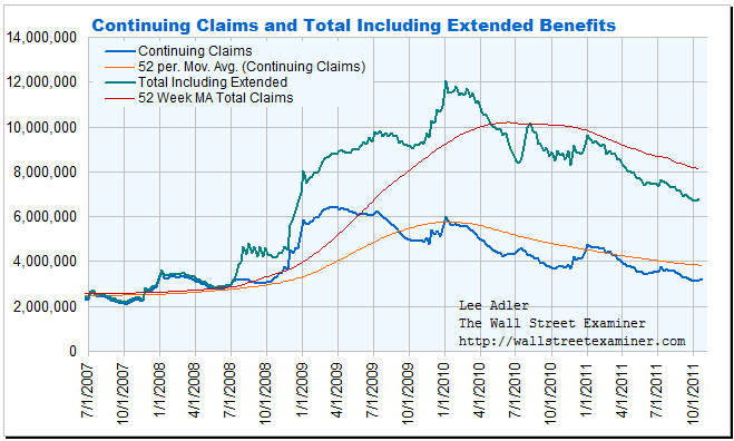 Some analysts look at continued claims to get an idea of whether people got jobs. Continued claims fell by 16,000 in the week ended October 22. The problem with that number is that we don’t know how much of that was due to folks leaving the rolls because they found jobs, and how much was due to exhaustion of benefits.